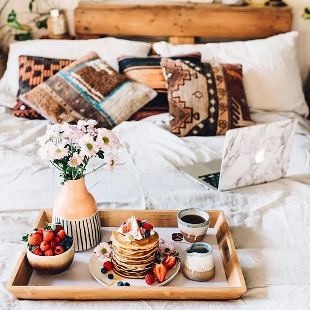 Fai qualcosa per te. Prenditela con comodo! Personalmente quando ho l’occasione di fare colazione a letto ne approfitto per leggere un libro su kindle oppure continuare una serie tv su netflix. Se non hai da lavorare e la mattina è tutta per te goditela fino in fondo.