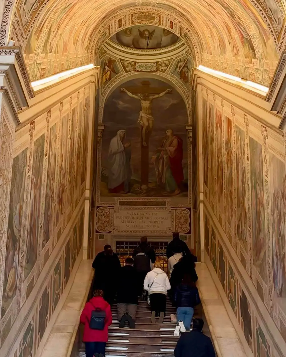 I pellegrini salgono questi gradini in ginocchio come atto di preghiera e penitenza, meditando sulla Passione di Cristo. I gradini originali sono affiancati da scale replicate per l’uso ordinario. In cima alla scalinata si trova il Sancta Sanctorum, l’antica cappella papale che custodisce preziose reliquie e un’antica icona di Cristo. Secondo la tradizione venne iniziata da San Luca per poi essere completata miracolosamente.