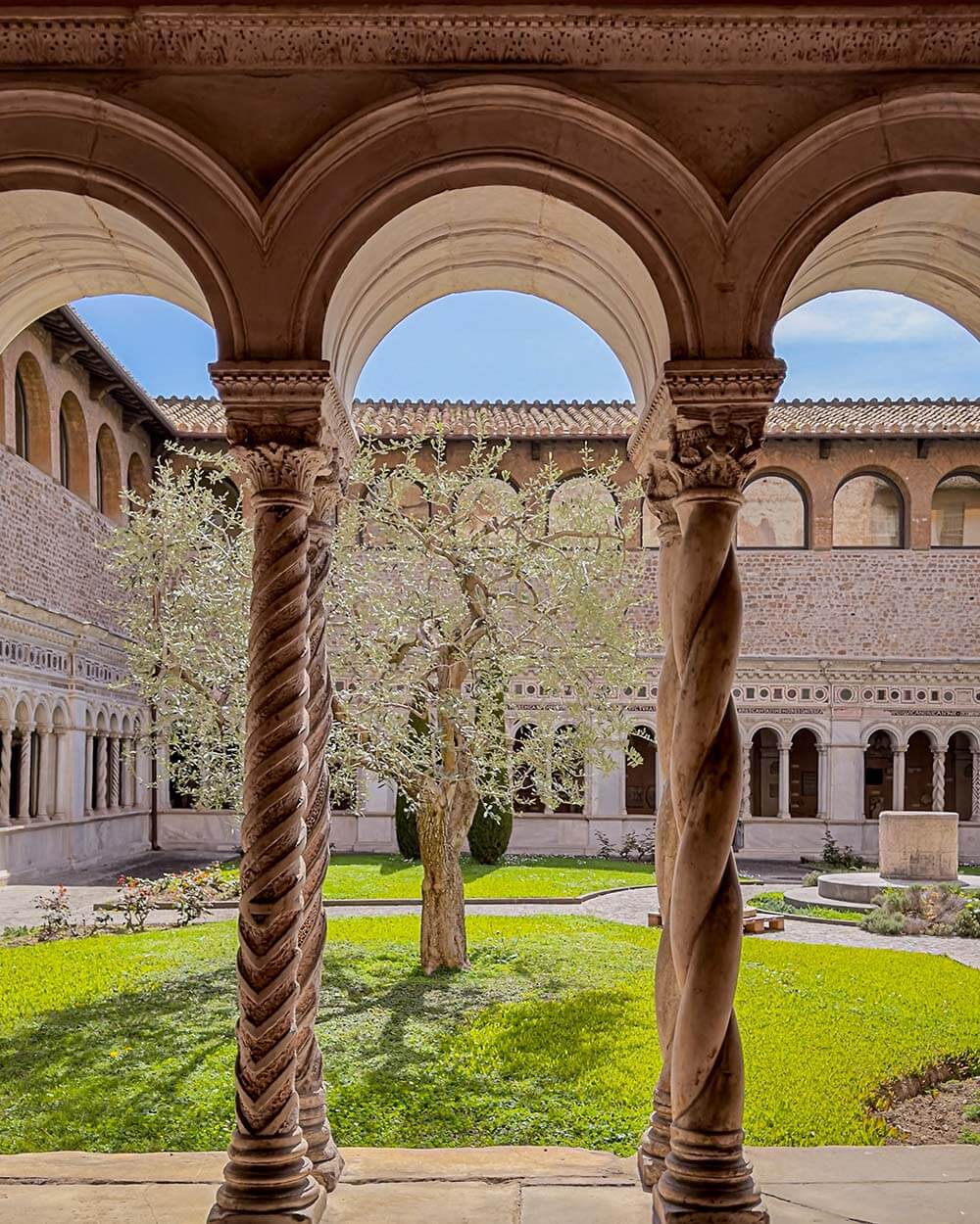 Il Chiostro Lateranense, adiacente alla basilica, è un’oasi di tranquillità che offre una pausa dal trambusto cittadino, e una sorpresa che vale la pena scoprire. Opera duecentesca dei maestri Vassalletto, questo spazio quadrato di 36 metri per lato incanta con le sue eleganti colonne di marmo finemente intarsiate, che fondono armoniosamente elementi romanici e gotici.
