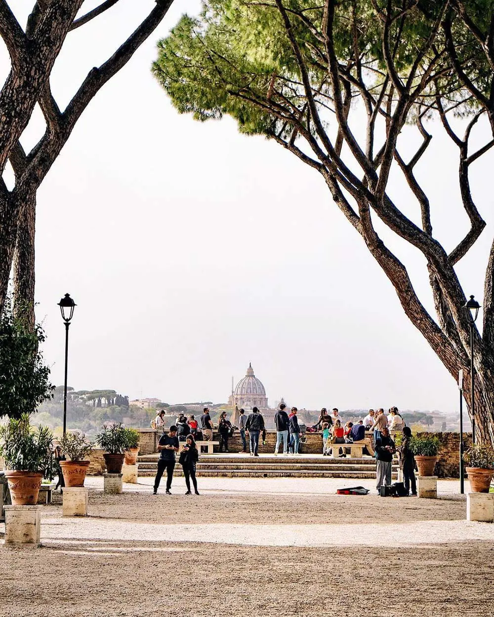 Il Giardino degli Aranci, situato sul colle dell’Aventino, offre una vista panoramica spettacolare sulla città, con il cupolone di San Pietro che spicca tra i tetti e le cupole romane.