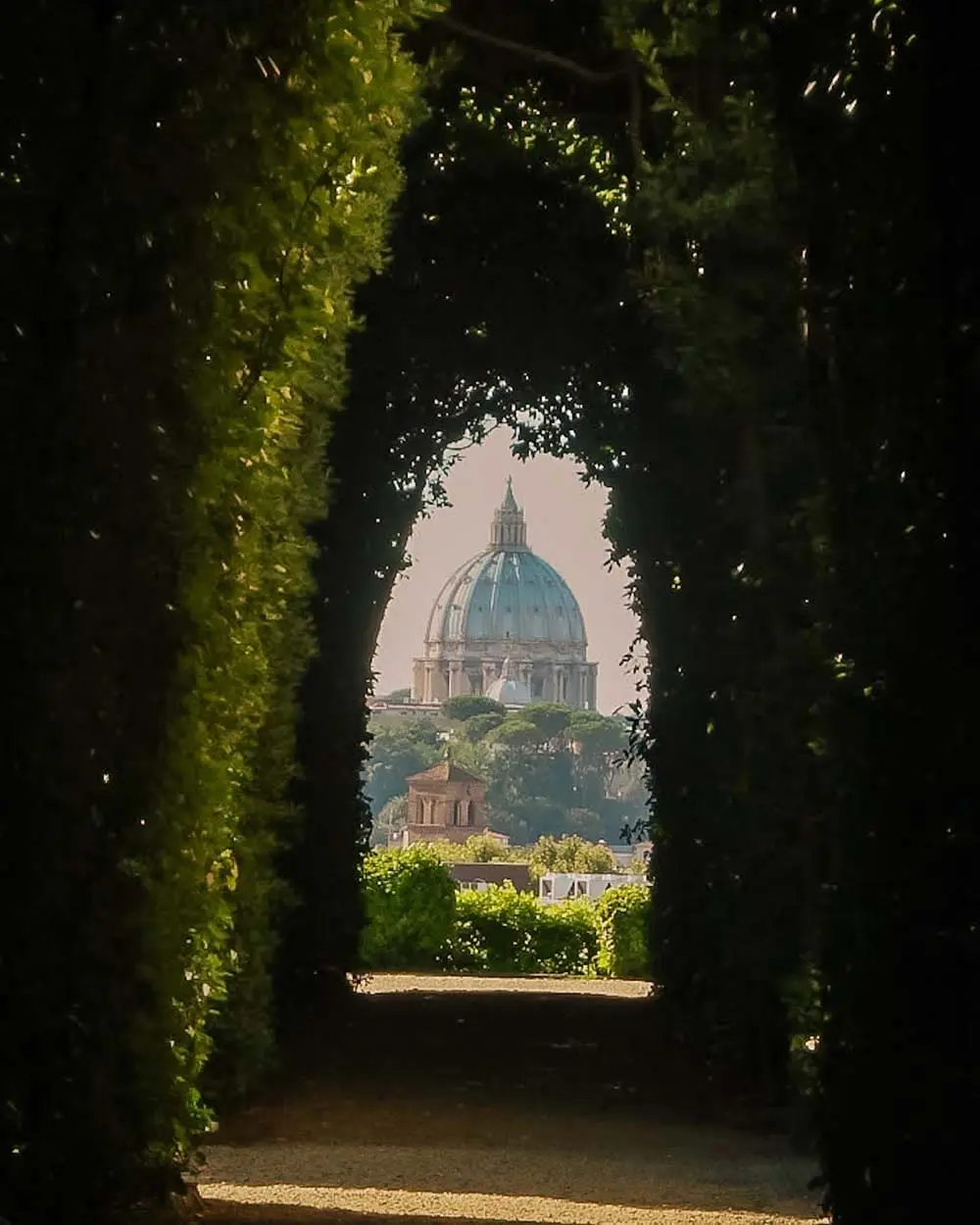 A pochi passi dal giardino si trova il Buco di Roma, noto anche come il Buco della Serratura, è uno dei segreti più affascinanti e curiosi della città. Situato nel portone del Priorato dei Cavalieri di Malta, questo piccolo buco nella serratura regala una vista sorprendente e perfettamente incorniciata della Cupola di San Pietro. Guardando attraverso di esso, sembra che la cupola si trovi al centro di un viale alberato, un effetto prospettico che incanta chiunque lo scopra. Da fare assolutamente!