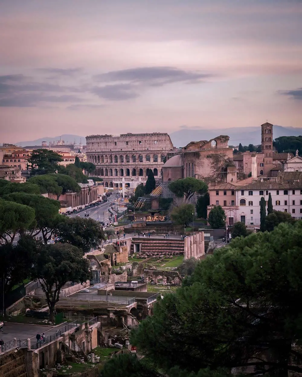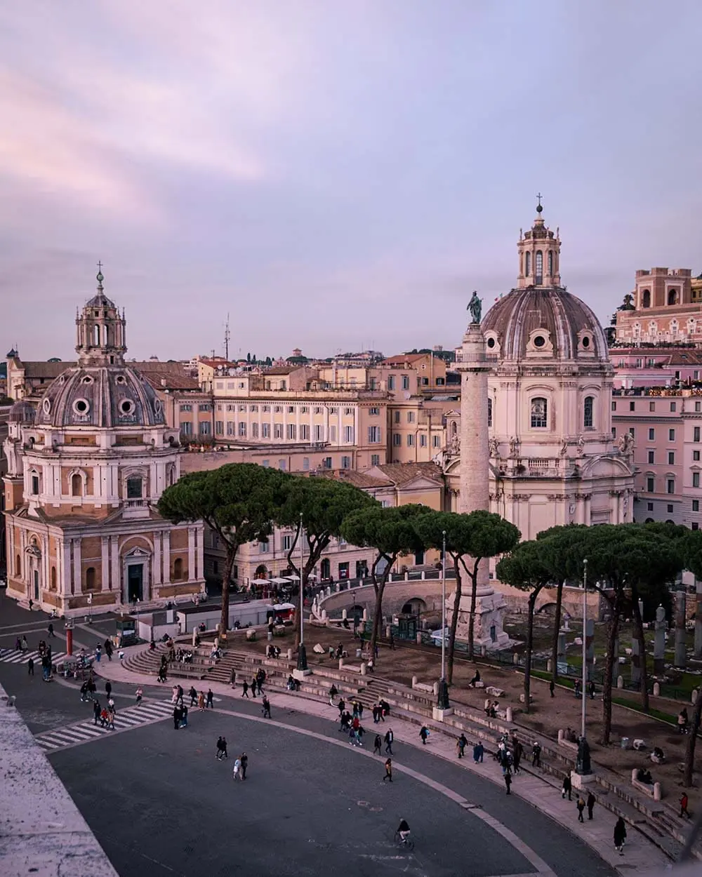 Il Foro Romano, centro politico e sociale della Repubblica prima e dell’Impero poi, ospitava templi, basiliche e piazze dove si decidevano le sorti di Roma. Poco distante, i Fori Imperiali rappresentano l’espansione del potere imperiale, con sontuosi complessi come il Foro di Traiano, famoso per la sua imponente colonna istoriata.