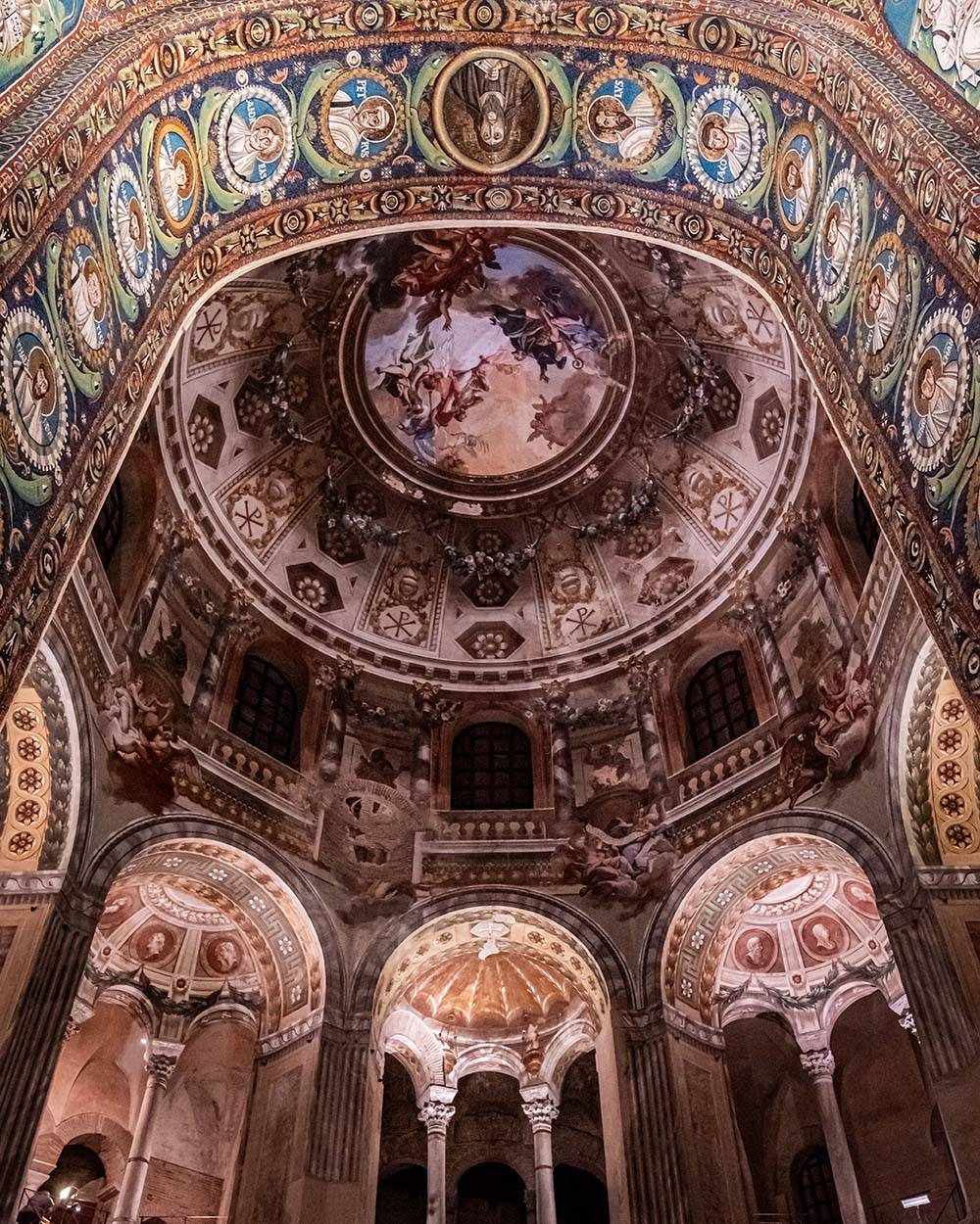 All’interno, si trova uno dei cicli di mosaici d’età paleocristiana e tardoantica più celebri al mondo. Le 26 scene cristologiche, risalenti al periodo di Teoderico, rappresentano il più grande ciclo monumentale del Nuovo Testamento e il più antico giunto fino a noi tra quelli realizzati a mosaico.