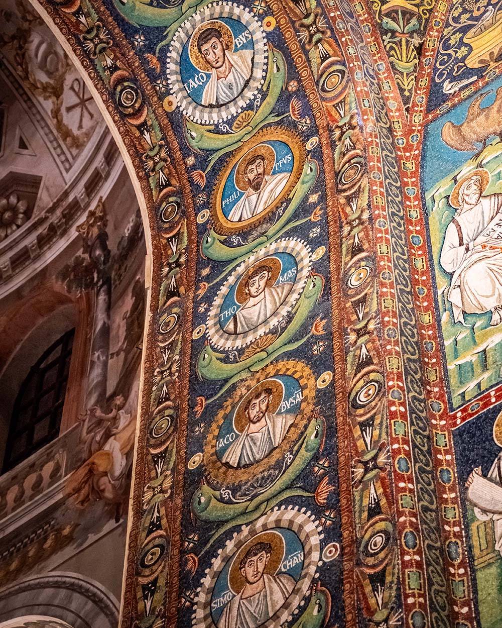 Nonostante le spoliazioni subite nel corso dei secoli, la chiesa conserva la bellezza della struttura originaria e affascina con i suoi splendidi mosaici policromi nel catino absidale e i sarcofagi marmorei degli arcivescovi lungo le navate laterali. Tra i mosaici, la raffigurazione di Sant’Apollinare a braccia alzate nella preghiera e i dodici agnelli bianchi simbolo degli apostoli.